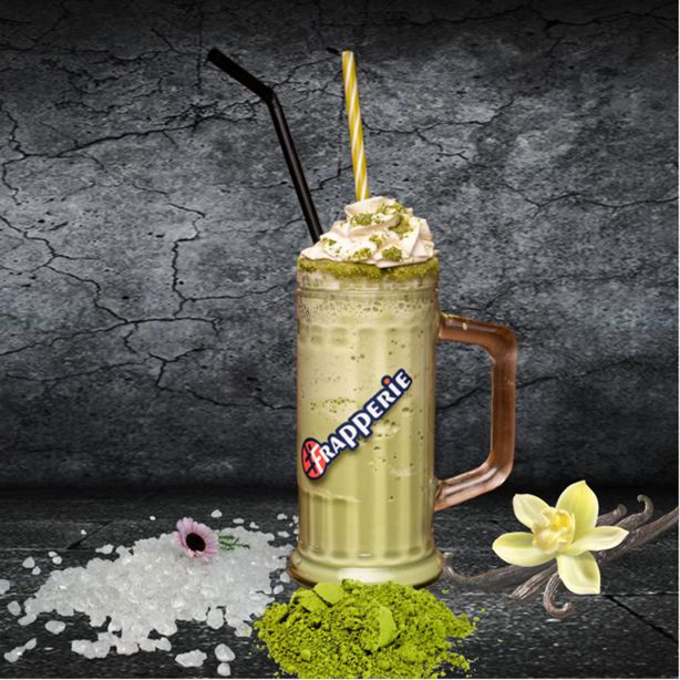 -Frappe de ciocolată: folositi premix-ul “Coffee chocolate Frappe” in amestec cu lapte si gheata, si veti obtine o bautua cremoasa, cu gust de cafea si ciocolata intr-o textura de inghetata topita.